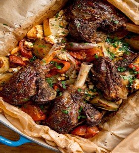 Slow-cooked lamb, traditionally baked in a sealed clay oven, marinated with garlic, onions, and herbs. The meat is tender enough to fall off the bone. A dish full of history, once prepared by shepherds in underground ovens.